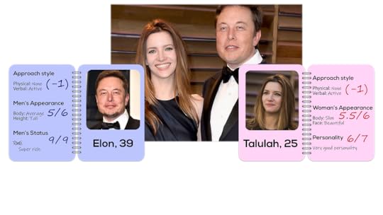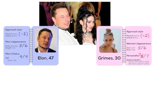 https://medium.com/media/cd383a01e85fda4fda499246496f4fb6/hrefMost people don’t think about why they have particular affections for specific people, but if you break it down you can often see what is really going on. Let’s talk about Elon first. He’s not an ugly guy. He is tall. He is very very rich. He has a pretty solid combined score (wink wink nudge nudge). Elon’s approach style is definitely what we refer to as a minus, which means he is more comfortable making verbal approaches with women, and sometimes having minimal physical initiating behaviors when excited about someone. He has spoken openly about not being quite
