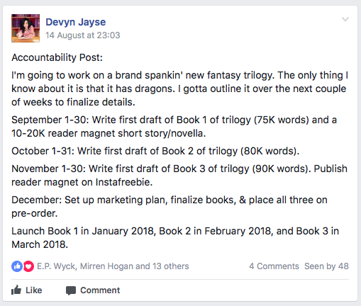 A few weeks ago, author E.P. Wyck asked in a Facebook group if anyone was interested in doing a 12 weeks to a trilogy in the Chris Fox method.
