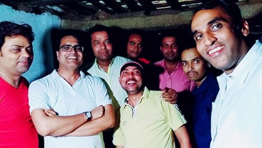 मधुपुर के पास के गांव पननिया में घुघनी खाने पहुंचे सारे बैचमेट. पीयूष नीली कमीज में हैउसने मुझसे वायदा लिया था कि वह एक कविता संग्रह प्रकाशित करवाएगा और उसका संपादन मुझे करना होगा. जब हम छोटे थे तब भी उसके खेल निराले थे, वह दीवार पर जमने वाले हरे मॉस (काई) उखाड़ लाता और रेत पर उससे सजाकर महलें और पार्क बनाता...