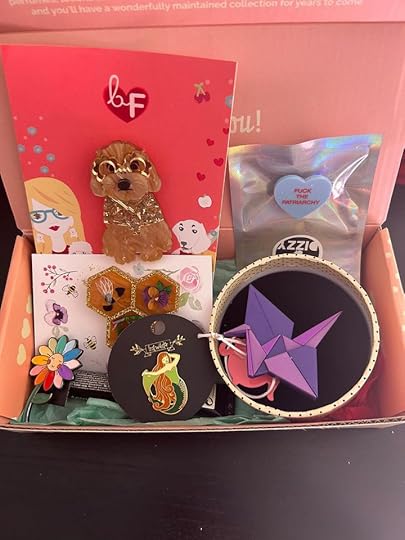 In a recent Instagram live, Darren said that he’s into brooches, and he has commented on some of mine in photos. So I set out to collect a few brooches for him – some of which relate to his music, his dog and also one of the brooches of mine that he admired. I gave the gift to The Project staff to pass on.