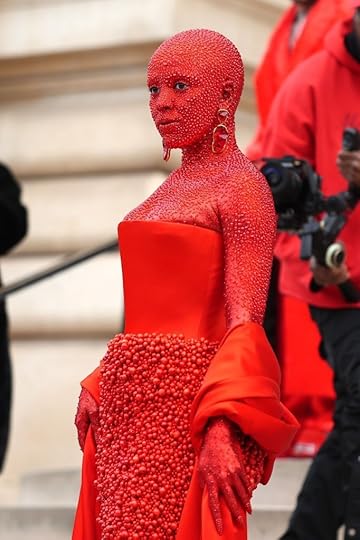 Today, Doja Cat, a singer, attended the Haute Couture Week dressed in red paint, a red dress and 30,000 sequins.
