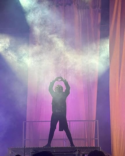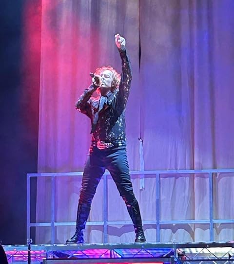 Video: Darren Hayes wearing black, singing and dancing on a stage. Light changes from purple to pink to blue. He walks to sing near his band. pic.twitter.com/zPMVYBg3BU
