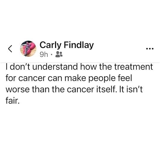 Image: a Facebook post from me. It reads: “I don’t understand how the treatment for cancer can make people feel worse than the cancer itself. It isn’t fair.”