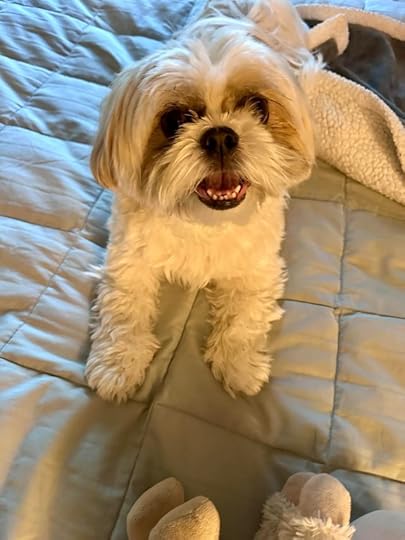 Hello, hello and Happy Friday! It’s been a week, let me tell you—but we’ve made it. Between writing deadlines, a mid-week storm, and trying to remember what day it is, I’m more than ready to settle in with a coffee and catch up with you all.The week kicked off on a high note with our volunteer fire department’s annual Lobster Fest. I went with the steak dinner (delicious!) and even scored a t-shirt—definitely a fun evening spent with friends and neighbors. On Monday, I jumped right into my work week with a planned edit of three chapters from the manuscript due to my publisher in July. By mid-week, a storm rolled in and knocked out our power for a few hours. I was deep into edits when I heard a loud boom and everything went dark. So, I grabbed my phone, opened the Kindle app, and spent some time reading before catching up on a few of my favorite YouTube channels. Once the power came back, I decided to call it a day—especially since a family member had an injury the day before (thankfully, all is well now), and I needed to shift into caregiver mode. The next day I was back to work and I’m thrilled to share that I’ve finished the copy edits just in time for the weekend!On the reading front, I’m still working my way through Murder in the Tea Leaves by Laura Childs—and enjoying it! Two new ARCs just landed in my Kindle app, so now I’m trying to decide which one to dive into first. As for TV, I recently discovered Wear Whatever the F You Want on Prime Video, starring Stacy London and Clinton Kelly. I was a big fan of What Not To Wear, so I was all in for this fun reboot with a twist. I’ve watched three episodes so far, and I’m loving it!It’s been a little while since Connie’s made an appearance in our Coffee & Chat! I snapped this photo the other morning when she was suddenly all rise and shine at 5 a.m.—which is very out of character for her. This girl loves to sleep in, so I had no idea why she was up so early, tossing around her lamb stuffie like it was playtime. Since I was already awake, I took her downstairs, got her settled on the sofa, and went to grab a glass of water. By the time I came back, she was already curled up and fast asleep. Typical Connie!