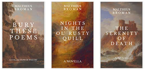 In this post, we will know more about our favorite Irish author, Maltheus Broman. Mal is all in one package. Good-looking... oh sorry... (cough) we were talking about writing here. He is a funeral director and a eulogist in and around Dublin but also a novelist, poet, and lyricist. He has published a novel, two short novels, and a collection of poetry. A book of song lyrics will be released in January 2022. Today we will have a chat about his recently published book.