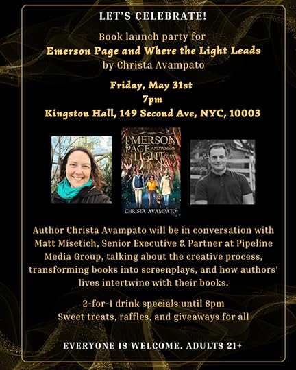 I am so excited for this Friday night! I spent all weekend working on my dissertation and sent it off to my supervisor so all my attention this week could be on getting ready for Friday’s book launch party. Last night I met up with my friend, Matt Misetich of Pipeline Media, to get our game plan together. This Friday at 7pm, Matt and I will be in conversation about the creative process, how books become screenplays, and the ways an author’s life intertwine with the stories in their books. I hope you can join us at Kingston Hall in NYC’s East Village (149 Second Avenue) this Friday, May 31st, at 7pm. We can’t wait to see you! More details about the party here: https://www.eventbrite.com/e/free-book-launch-party-emerson-page-and-where-the-light-leads-tickets-899217332247