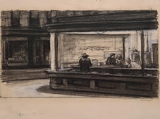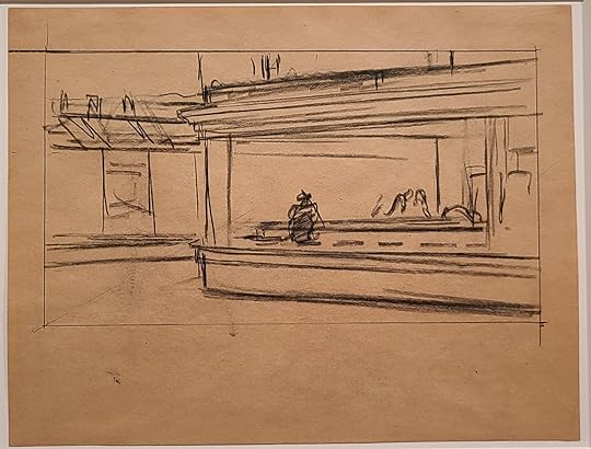 The one sadness I felt is that his most famous work, Nighthawks, is not there. I asked a guard where that painting is, and was told, “It’s at The Art Institute of Chicago and they weren’t giving it up. But, the sketches of it are in the side room.” My dear friend, Vicki, who prompted me to catch this exhibit with her before it closes on March 5th, and I hustled over to that side room and it was filled with Hopper’s sketches of many of his best known works. We found them equally fascinating as the final pieces because they show his meticulous, studious process of perspective and the clarity of vision via the clean lines with which he’s synonymous.