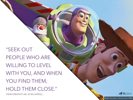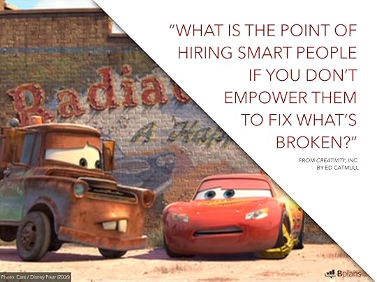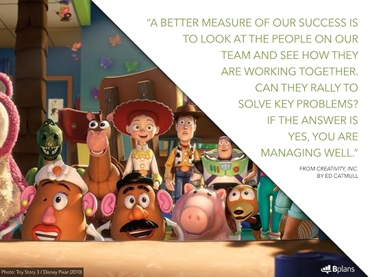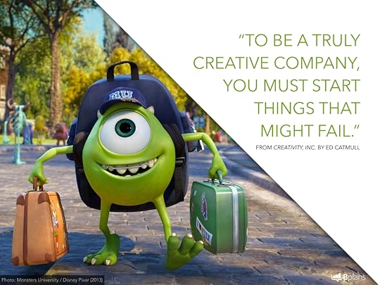 Jonathan Michael from the company Bplans pulled together these Catmull quotes and created a set of graphics with photos from Disney / Pixar that will have your brain buzzing with ideas. I hope you find them as inspirational as I do.