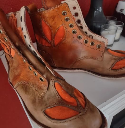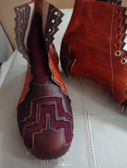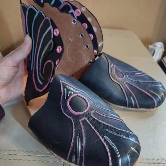 Kaylee was born and raised on an alpaca ranch on the coast of California, where she spent most of her days learning how to knit, sew, paint, hand spin, and teach herself all types of random crafts. She used the excuse of a degree to briefly run away to university in Australia, and after securing a degree in archives and records management and becoming a certified archivist, she used the lockdowns as an ideal time to teach herself how to make shoes. After two workshops and a year and a half of projects, Kaylee has made over a dozen pairs of unique shoes!