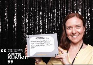 This was puzzling to a lot of people, and that’s when a lightbulb went off for me. How could I bring the arts and business, and more specifically people who work in both disciplines, together to learn from one another? At the end of the Summit, everyone had to create a card to describe their career goal for the year. Here I am with my card: