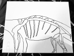 Dreadnoughtus is entirely composed of the faces of other animals closely related to dinosaurs—birds (which are in actuality dinosaurs) and modern-day reptiles. The skeleton in silver paint illustrates the bones that were part of the discovery in Argentina per this schematic: