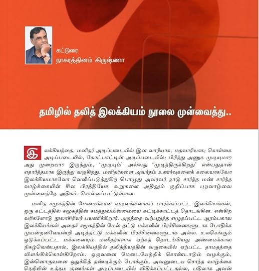 « படித்து பொருளாதாரத்தில் முன்னேறிய தலித் இளைஞர்கள் தங்களை உயர்சாதி மனோபாவத்துடன் கட்டமைத்துக்கொண்டனர் »என்கிற விமர்சனத்தையும் காய்த்தல் உவத்தலின்றி திறனாய்வு நூலுக்கான அறத்துடன் முன்வைக்கிறது. ஆகப்பிரச்சினை சாதியத்தில் மட்டுமில்லை, மனிதர் வர்க்கம் சமனிதரிடையே ஏற்றத்தாழ்வைக் கற்பிக்க தம்முடைய சமூகச் சூழலையொத்து ஏதேனும் ஒரு காரணத்தைத் தேடுகிறதென்பது நமது வாழ்க்கை, காலம் காலமாக உணர்த்தும் உண்மை. சமத்துவமின்மையின் அடிப்படையில் சூத்திரர்கள், சூத்திரர்கள் அல்லாதோரென பிரித்துணரப்பட்ட இதே இந்தியச் சமூகத்தில் சூத்திரர்களிடையேகூட ஏற்றத்தாழ்வை முன்வைத்து உயர்வு தாழ்வு கற்பிக்கப்படுவதையும், அவ்வாறே ஓரிடத்தில் தங்களை உயர்சாதியினராக நினைத்துக் கொண்டிருக்கும் மனிதர்களேகூட பிரிதோரிடத்தில் சூத்திரர்களாக நடத்தப்பட்ட உதாரணங்களும் இருக்கின்றன. பாரிஸ்ட்டர் பட்டம்பெற்ற காந்தியேகூட முதல் வகுப்பில் வெள்ளையர்களுடன் பயணிக்க உரிமையில்லையென மறுக்கப்பட்ட கதை நாம் அறிந்ததுதான். அவ்வாறே இந்திய மண்ணில் உயர்சாதியினராக இருந்தாலுங்கூட ஓர் இனவாத ஐரோப்பியனுக்கு, நாம் அனைவருமே தீண்டத்தகாதவர் என்கிற எதார்த்தத்தை உணருவோமேயானால், சக மனிதரிடையே பேதங்கள் பார்க்கமாட்டோம். ஆக புற உலகில் மட்டுமல்ல மனிதர்களின் அக உலகிலும் மாற்றங்கள் நிகழ்ந்தாலொழிய இதற்கு விமோசனமில்லை, அதற்காக ஒடுக்கபட்ட மனிதர்கள் அமைதிகாத்திட வேண்டுமென்பதில்லை, பொறுத்தது போதும் பொங்கியெழு என உள்ளம் கட்டளையிடுகிறபோது சொரணையுள்ளவனுக்கு கோபம் வருவது இயற்கை, தலித்திய இலக்கியக்குரலை அப்படித்தான் புரிந்துகொள்ளவேண்டும்.