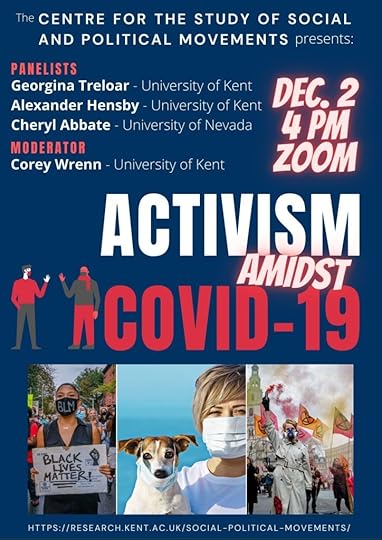 On December 2nd, I moderated a panel on UK/US activism in the midst of COVID-19 as co-director of the Centre for the Study of Social and Political Movements. My panelists included Dr Alex Hensby, co-director of the Centre, graduate student Georgina Treloar, Dr Ellie Jupp, and my colleague Dr Cheryl Abbate of the University of Nevada, Las Vegas.