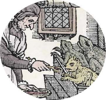 A witch feeding her 'familiars'Although paganism often practiced celebrations that were violent to other animals (including animal sacrifices, feasts of animal flesh, ceremonial "hunts," and wildlife-threatening bonfires),1 the pagan way also encourages communion. As Christianity colonized the West, the animistic pagan lineage, a threat to the newly establishing order, was through to survive in women. Witches were believed to be closely bound to other animals, as both represented the wild, potentially dangerous, natural world. Women's relationship with other animals was thought highly suspicious, in fact. The stereotype of the "crazy old cat lady" is a vestige of this distrust of independent women who treat other animals as persons and reject traditional, patriarchal institutions like marriage and child production.