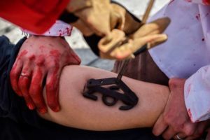 Animal activists regularly employ extreme protest rituals in hopes of soliciting empathy and support from audiences. Activists may engage in dangerous tree-sits. They may brand one another with hot irons as if they were cows. Similarly, they even reenact painful medical experiments or sexual violence against other animals.