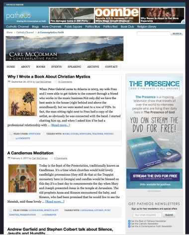 The home page of my Patheos blog. Notice you can subscribe to the blog in a beneath the first ad in the right-hand column.