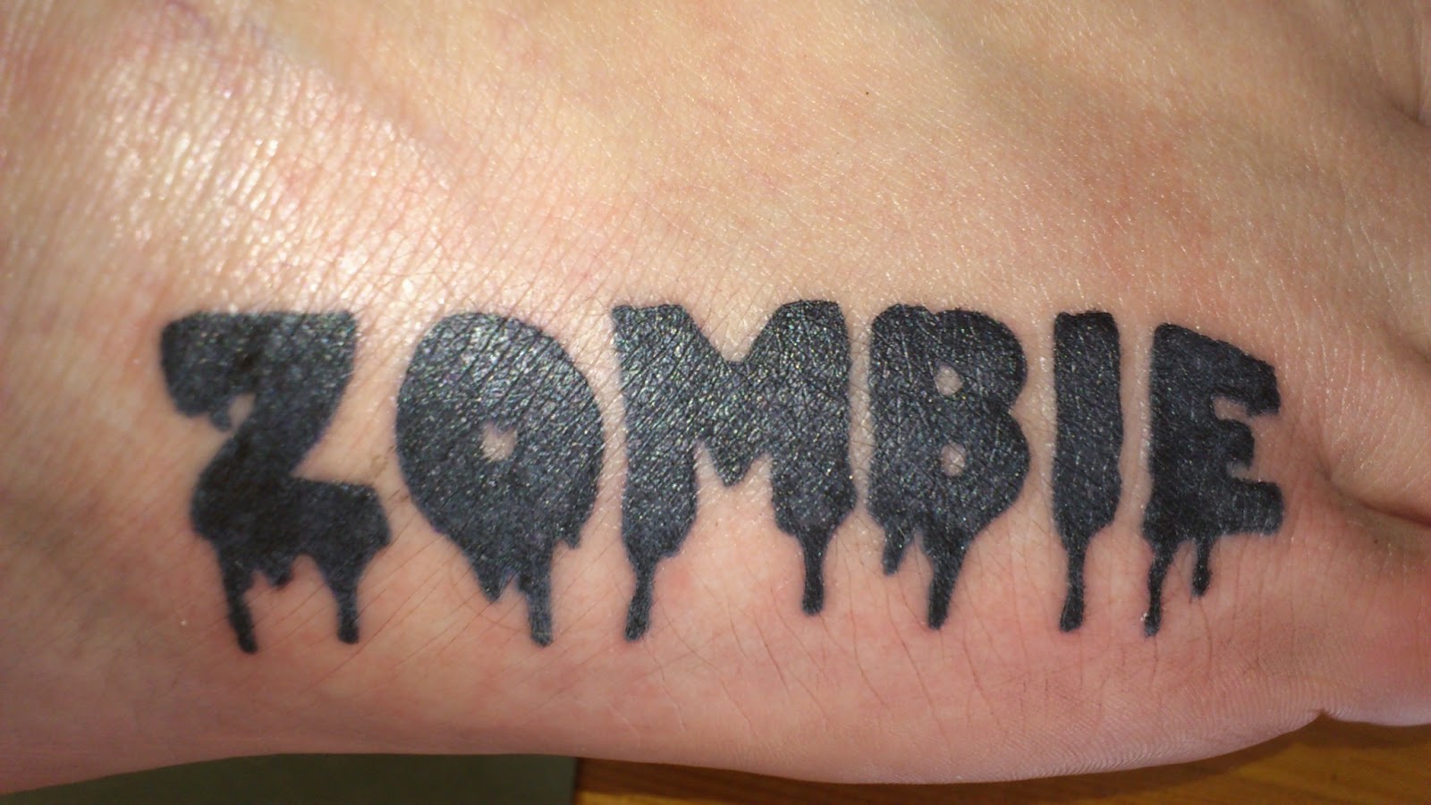 A week later I booked myself in for another and had a sugar skull on my back. My most recent ones are a rose on my finger and 'Zombie' tattooed in black dripping blood style font on my foot. I'd quite like one of the Russian Dolls from the front cover of Blog of the Dead next.