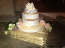 The newly-married coupleIt rained the whole day, but somehow, the guests didn't notice. As you can see, they hired an old Routemaster to take us all on a trip round London visiting locations that were significant in their courtship. Oh - the dress? Bought at a Red Cross Designer Bridal sale. For the cognoscenti - it's an Emma Hunt bridal gown, should have sold at £3,500. A snip at £500 and the charity got the money. The shrug is vintage, as is the silver hair clip. There was Afghan food at the reception (DD spent 3 years out there), a sitar player, and a cake made out of delicious fresh cheeses (see pic).
