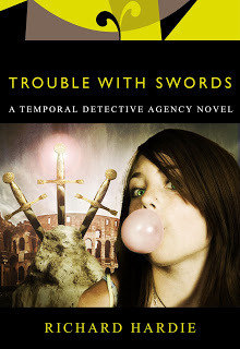 Richard HardieThe PINK SOFA is delighted to welcome a very special guest. Not only does Richard Hardie write YA adventure books with feisty female heroines, as I do, but today is the launch of his second book in the Temporal Detective Agency series. It's called Trouble with Swords and The PINK SOFA is honoured to be part of the celebrations. To mark this wonderful occasion, there are coloured fairy lights and paper chains, as well as sweets and bubble gum on the coffee table (YA food). Tuck in.