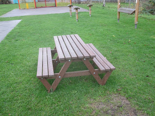 Last week, my spirits were also lifted by the discovery of a little picnic bench, that mysteriously 'appeared' on the field. The Council Fairy has, it seems, decided to make a visit. Bear in mind that we have been asking them for some seating for years. Now, two weeks before a Public Inquiry, and a site visit from the Inspector, who will see for himself how run-down and neglected our park is, we have seating. Mirabile dictu! (My Inner Cynic is currently bent double with laughter).