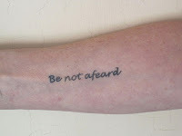 Don't do this at home!3. In February, at the age of 61, I had my first tattoo: I have the words: Be not afeard on the inside of my right arm. These words are spoken by Caliban in 'The Tempest'. I had the tattoo done 'live' on air on the BBC Radio 4 PM programme as part of their 'Leap for Leap Year' listener project.