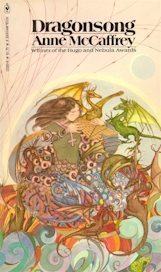 It was at that library that I found a small slim book with a girl surrounded by dragons on it. I liked spaceships, but I liked dragons and wizards, too, and I can remember to this day the feeling of excitement as I stood in my ugly brown pants and striped shirt at the edge of a seating arrangement, my fingers crackling on the brittle plastic the book was incased in, and read the inside blurb where the brave girl ran and was rescued by a dragon telling her in a no-nonsense voice to "Stand up, you fool!"