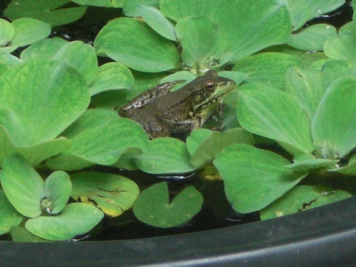 one of my orchids. There are a few new fish in my fish pond, too. (Love that game) They went to the bottom to recoup, but here's a shot of one of two frogs that took up residence this last month, and grew, and grew, and grew.