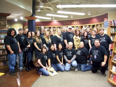 The original artwork is based on a petroglyph that Guy and I "found" at the ancient village in the Petrified Forest. It struck me enough that it figured into the story itself. (Seriously, how could a bird eating a man not get a writer's imagination going?) Wearing one will get you into the "family photo" at the signing, and bragging rights. (laugh)