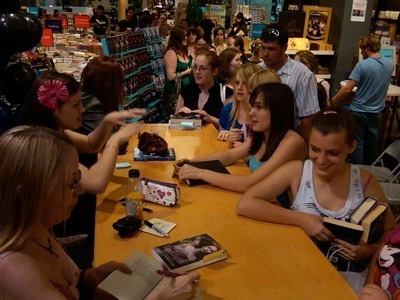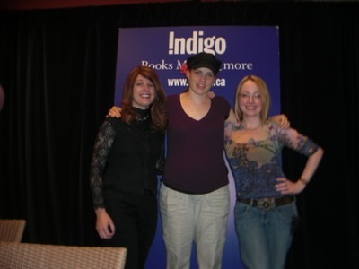 Hi, guys. Aprilynn, Leslie, and I had a great event yesterday out at Chapters, giving away all kinds of swag (freebies), chatting with the readers, and of course, SIGNING!! I love this picture, taken by one of the readers. It kind of says it all.