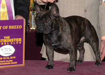 Lots of stuff today. First, here's a shot of my favorite so far to win the Westminster, the French Bulldog, Bru. This is an absolute fabulous dog in my opinion, and he took best in breed for the non-sporting group. He had an indescribable air of class as he took his walk. Sort of a man's dog, if you know what I mean, His handler had on a tux, and the two of them looked a pair. He's confident and cool, and he knows he looks good. (grin)