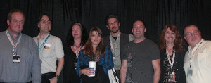 Then it was into the basement for the panel, JUSTICE IS SERVED. Michael Spradlin moderated a fab panel. And yes, I remembered my camera! This first picture is me chilling beforehand. We even got a picture with us all together, and though the names aren’t in order, here’s who was there: Myke Cole, Thomas E. Sniegoski, Jacqueline Carey, Christopher Bennet, G.T. Almasi, Amber Benson, Kim Harrison (Into the Woods)