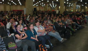 From there it was off to the autographing area downstairs where I panicked when I saw the stage they had set up for the individual author chats–right out in the middle of the floor. Seriously? Us authors are mostly introverts, dudes! Give us a room next year please. We are not performers, and shouting into arenas makes us nervous. But with my editor standing by and helping with the questions, I got through my private panel where I eased up on the teasing and actually gave out some nice tidbits about what might be coming next after the Hollows and how INTO THE WOODS figures in to that with three novellas I might be developing into a series.