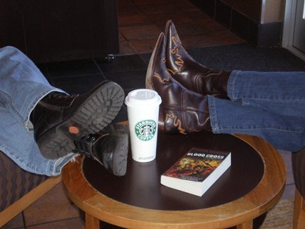 Second, but actually this should be first, on the way to Nicola’s, my editor called, and you guys pushed A PERFECT BLOOD up into the New York Times list! It hit at a very respectable 14 on the mass market. Not bad for a book that has been out for almost a year and hit #2 on the hard cover list. Smiles, smiles, smiles. Thank you! It feels pretty good sitting at my desk this morning. Also, Guy was out yesterday and spotted it at the “must read”end cap at a get-all store. I know one chain, especially, is going to have A PERFECT BLOOD at a steep discount, so keep your eyes peeled, and if you spot it, let me know.
