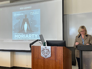 Ashley Polasek followed Curtis and talked about her role as managing playwright Ken Ludwig's business as he is in the process of creating a new Sherlockian play to premiere next year, Moriarty. Ashley took us through Ken's creative process on building a play from scratch instead of adapting one big story like he had in the past with Baskerville. This new play promises to use the professor, Mycroft, and Irene Adler along with Holmes, Watson, and plenty of new characters. It was very interesting to see how Ken worked through the Canon, picking things that would work in his story, as well as what he chose to mold, merge, and adopt in this process. Ashley didn't give away any spoilers, but you could tell from the pictures of the marked up canonical texts that this play will have plenty of Sherlockian pieces coming together for one big event.