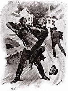 And just listen to some of the phrases that Watson uses to describe this doctor when he visits Baker Street:"a peculiar measure" of clothing"a hunting-crop swinging in his hand""his hat actually brush[ed] the cross bar of the doorway and his breadth seemed to span it from side to side""A large face, seared with a thousand wrinkles""marked with every evil passion""bile-shot eyes""thin fleshless nose""a fierce old bird of prey"