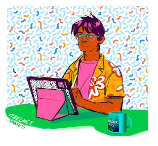I’m an illustrator and graphic designer. Sherlock Holmes was kinda my muse growing up. I spent countless hours drawing him, and now that I’m older I’ve found a lot of work drawing him for other people. Also- I met Joel Emery through my fan art of Sherlock and Co. and now I work for the show! I got the job because I know most of the people in fandom, and always have my ear to the ground. So remember! Drawing gay fanart will get you places