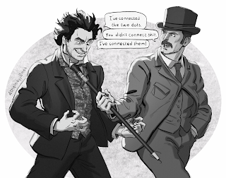 Going through old issues of The Baker Street Journal will make you realize that Sherlockian fan art has been around for a long time. (The BSI even sold a book of one a few years back.) And when newer Sherlockians came to the hobby through the BBC's adaptation, we really saw an explosion of Sherlockian artists take to the internet. So this week's Interesting Interview subject, Athelney Jones, is following along in an age old tradition. As you'll see below, he's tackled adaptations from Ronald Howard to Sherlock & Co. In fact, his art got him hired on as Sherlock & Co.'s social media manager, so there's hope for those of who still want to get paid to be Sherlockians...