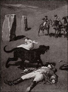 Okay, some of you have blank looks on your faces. It all went down around the time of the Great Rebellion and the lord of Baskerville Manor, Sir Hugo, was known to all as a cruel, godless, and profane man. He was lusting after a yeoman’s daughter, but having enough sense she avoided him at all costs.