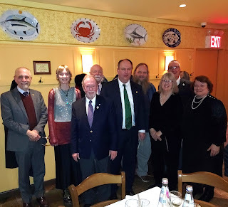 Some members of The Noble Correspondents (at the Foundry Dinner during the 2025 BSI weekend). The Noble Correspondents are a corresponding (via USPS) scion society founded Michael Barton in 2024. L-R: Burt Wolder, Cate Barton, Terry Hunt, Don Pollock, Michael Barton, Christian Monggaard, Rosemary Herbert, BH, Anna Behrens.