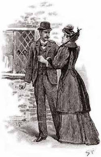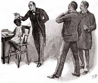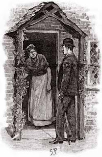 Because as soon as Grant leaves the house again, where does Effie go? Right back to where he asked her not to. How does this guy honestly expect his wife to avoid it? Even if she did try to stay true to her word, it's right down the street. There is no avoiding the problem here. But go ahead, Grant, hide your head in the sand, you blockhead.Now, if Grant Munro isn't dumb enough already, let's look how this next thing plays out. He returns home to find Effie gone. Asks the maid where she is and hears she's gone for a walk. He tells Holmes, "My mind was instantly filled with suspicion." He knows she's gone off to the forbidden house, but he runs up to their bedroom to check? Grant Munro has no idea what's happening in that strange house, and instead of rushing after her, he checks the bedroom, just to make sure. He's lucky there's not an ax murderer in that other house. What a dummy.Effie tries to calm Grant down but still won't tell him what's going on. He clearly doesn't want her going to that house, but says he can't trust her and leaves. Hey, smart guy, guess where your wife goes when you aren't around? I can't believe this guy didn't drive Holmes to drugs. Oh wait....(Side note, Grant hasn't gone to work for a couple of days by this point. He is either A: someone with a very reliable staff, B: someone who isn't that important at the office, or C: someone who is about to get fired. You decide.)After all of this, Grant Munro visits Sherlock Holmes and tells his story. Holmes listens, sends him back, and says to see if anyone is still in the house. Grant does, and when Holmes and Watson arrive, by golly, Grant Munro has decided that he will force his way into that house. Where was this decision making when a scary face was looking out of the window, or his wife was sneaking off in the middle of the night, or his wife was walking out of the actual house? Now this guy gets a backbone? Grant Munro is the worst.I've focused quite a bit on how dumb Grant Munro is, but here Effie Munro really starts to shine. Her husband and two complete strangers approach the mystery house and she tries the same old ploy. "Trust me again, and you will never have cause to regret it." Lady, you've got to have something stronger than that. You haven't really thought this out, have you?Turns out, Effie Munro's daughter from her previous marriage was still alive, and Effie left her there to move to England? Mother of the year, right there.