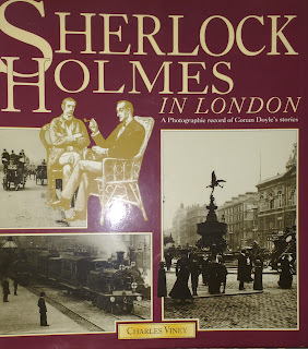 Charles Viney’s “Sherlock Holmes in London” (1989) is subtitled “A Photographic record of Conan Doyle’s stories”.It’s a beautifully produced coffee-table-size publication by Smithmark of New York. Viney progresses story by story from “A Study in Scarlet” through to “The Casebook”, omitting only those such as “The Valley of Fear” that feature little of London, illustrating with fabulously evocative vintage photographs of the metropolis Holmes prided himself on knowing as intimately as Charles Dickens. For good measure, Viney appends an “Atlas of Victorian London”: full-page reproductions of G. W. Bacon’s 1888 “New Large-Scale Ordnance Map of London & Suburbs”. It’s a beauty of a book and looks available, used, on the net.