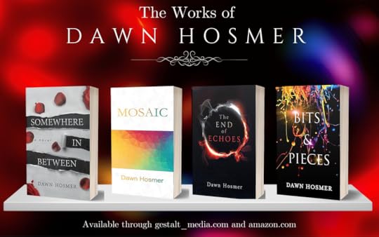 In addition, my books are always inspired by real-life events. I mentioned this earlier with The End of Echoes. Bits & Pieces combined my What If question with the tragedy of a young woman who went missing from my son’s college campus when he was a freshman. She was later found murdered and her killer was responsible for the rape and murder of several other women. Somewhere In Between also has some real-life events that served as inspiration. Mosaic is a collection of very short stories (or micro-fiction) which I pulled from some of the pieces I’ve written on Twitter in the daily hashtag prompt events.