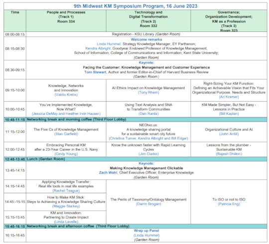 The Midwest Knowledge Management Symposium was held on June 16, 2023 at Kent State University in Kent, Ohio. It was the first time the event was held since 2020, and the first time it was held in person since 2019.