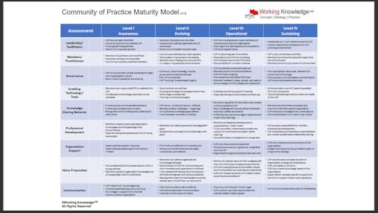 2009–06 Managing Knowledge Loss Due to Workforce Attrition — Slides2014–07 Losing Your Minds: Capturing, Leveraging & Retaining Organizational Knowledge — Slides2016–02 Agile KM — Slides2019–02 The Value of CoPs in International Financial Institutions — SlidesPresentationsPractice-Based KM Maturity ModelCommunity of Practice Maturity ModelKM Framework7 “Must Know” KM Fundamentals to Implement Knowledge-Based Contract ManagementStrategic and Critical ThinkingSlideShareConferencesKM Showcase2019 — Communities of Practice — Shared Value2020 — Knowledge Management is Easier to Deliver as a Slogan than as a Sustainable InitiativeKMWorld2015 W3: Applying ‘Agile’ in Developing KM Strategies & Implementing Frameworks2010Replacing Risk With Knowledge in Program Operations — SlidesKnowledge Loss Strategies — SlidesNASPOManaging the Risk of Knowledge Loss Due to Workforce AttritionDoD and Federal Knowledge Management Symposium2019 The Key to KM and Digital Transformation is Not TechnologySLA2021 Developing, Implementing, and Resetting a KM Strategy in a Time of UncertaintyKMGNKMAgile — KM Strategy Development “Faster than the Speed of Change”Midwest KM Symposium2023 Knowledge Management Made Simpler, But Not Necessarily Easier! Lessons from KM in Practice