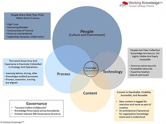 Knowledge management involves the people, culture, processes, and enabling technologies necessary to capture, manage, share, and find information.The new mission of KM is to link all of an organization’s knowledge, in all its forms, making it not just findable, but understandable and actionable.He further deconstructed KM into five segments: