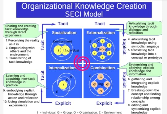 Here are definitions for five of Nonaka-san’s specialtiesBa: A shared space for emerging relationships. It can be a physical, virtual, or mental space.Idealistic Pragmatism: Synthesizes:Ontology: How to be — the vision of the future and the commitment to it.Epistemology: How to know — the SECI spiral that synthesizes objective and subjective views.Creation: How to change oneself and the environment. Knowledge Creation : Inventing new concepts, approaches, methods, techniques, products, services, and ideas that can be used for the benefit of people and organizations.Phronesis: Practical wisdom or prudence, is a crucial intellectual virtue that guides individuals in making sound moral decisions in practical matters. It’s not merely theoretical knowledge, but rather the ability to discern the best course of action in specific situations, considering the particular context and circumstances. This involves understanding what is good for humans and acting accordingly, blending reason, experience, and moral character. Phronesis is distinct from theoretical knowledge (episteme) and technical skill (techne). It’s not about knowing abstract principles but about applying them effectively in real-life situations.SECI Model: Describes how explicit and tacit knowledge is generated, transferred, and recreated in organizations. Socialization (tacit to tacit) is the process of converting new tacit knowledge through shared experiences in day-to-day social interaction. Externalization (tacit to explicit) is a process whereby tacit knowledge is articulated into explicit knowledge so that it can be shared by others to become the basis of new knowledge. Combination (explicit to explicit) is a process whereby explicit knowledge is collected from inside or outside the organization and then combined, edited, or processed to form more complex and systematic explicit knowledge. The new explicit knowledge is then disseminated among the members of the organization. Internalization (explicit to tacit) is a process whereby explicit knowledge created and shared throughout an organization is then converted into tacit knowledge by individuals. This stage can be understood as praxis, where knowledge is applied and used in practical situations and becomes the basis for new routines.Nonaka-san created the following content. I have curated it to represent his contributions to the field. For more about Nonaka-san, see Profiles in Knowledge.