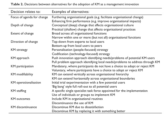 A Knowledge Management implementation as a management innovation: the impact of an agent of changeA Knowledge Management implementation as a management innovation: the impact of an agent of change