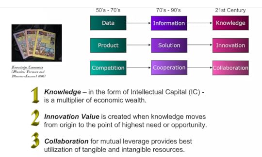 7 Cs of Knowledge Leadership: Innovating our Future with Doug MacnamaraKnowledge Leadership is a Matter of Context. Leaders will understand the nature of complex context — how to make sense of it and how to convey it (with magnetic vision) to others.Knowledge Leadership is a Matter of Competence. Leaders will know that competencies are based in experience and are more dynamic than static attributes.Knowledge Leadership is a Matter of Culture. Leaders will know the relationship between the motivation (Psychology) of an individual and the culture (Sociology) of an organization. They will value heritage (Anthropology) and know that more than 2% of manager time need be dedicated to visioning — the lifeblood of a future generation business.Knowledge Leadership is a Matter of Communities. Leaders will understand the value of the collective — the teams and communities within whom work gets done and visions are realized.Knowledge Leadership is a Matter of Conversations and Common Language. Leaders will know how to evolve a common language and that there is more power in the dialogue than what gets documented in a particular planning process.Knowledge Leadership is a Matter of Communications. Leaders will value the communications process — both technical and human — but not as much for what gets conveyed as what might be learned.Knowledge Leadership is a Matter of Coaching. Leaders will coach and be coached by people of similar values and vision. Trust will be placed in those able to care more about leveraging the competencies of one another.5 lessons learned about architecting our future on the Innovation SuperhighwayThe FIRST lesson: We’ve learned that in the new domain of Knowledge Economics, what we count matters. As imprecise as it may seem, what we need to calibrate is the intangible, hidden, intellectual wealth of an enterprise — how it is created and leveraged.The SECOND Lesson: We’ve learned that the Knowledge Structures operate as holonomies — nesting of networks — with both local and global scope. We need to understand how they operate as communities and spheres of influence.The THIRD Lesson Learned: We’ve learned that Knowledge Workers, although originally described as high technology or white-collar, include everyone; we all have a role to play. We need to determine what now motivates constructive behaviors, and new modes of interdependence and collaboration.The FOURTH Lesson Learned: We’ve learned that all Knowledge Processes can fit under a rubric of innovation, but innovation redefined according to the flow of knowledge. We need to make the process explicit and discover ways to measure performance. How knowledge is created, shared, and applied. We are like Pogo — confronted now with insurmountable opportunity!The FIFTH Lesson Learned is: We’ve learned the power of Knowledge Processing Technology — advancing in features and receptivity beyond our wildest dreams. We’ve learned that technology isn’t an end but a means for prosperous innovation. We need to find ways to take advantage of the advancements and use it as an instrument in the new economy.The laws of knowledge dynamics1st law — knowledge multiplies when it is shared. Knowledge is a limitless and expandable source of economic wealth. Intellectual assets — effectively exploited through innovation — are the most valuable resource to manage.2nd law — value is created when knowledge moves from the point of origin to the point of highest need or opportunity. Innovation encompasses the full spectrum, from idea creation to commercialization, and successful innovation involves converting knowledge flows into marketable goods and services.3rd law — collaboration for mutual leverage provides optimal utilization of tangible and intangible resources within and across boundaries. Collaboration replaces the competitive (win/lose) paradigm prevalent today. Win/win benefits are based on pooling and leveraging competencies: knowledge, know-how and skills.VideosThe EMC Innovation Networkhttps://medium.com/media/b239f7733c8122fb1b80af13c516ea0c/hrefBenchmarking Innovation Policieshttps://medium.com/media/47b8b97f9057b83830769d338cfd00d2/hrefICT and Innovationhttps://medium.com/media/f7d4810fcb90cf692dd94cbb01972c9e/hrefBooks1. The Innovation SuperHighway: Harnessing Intellectual Capital for Collaborative Advantage