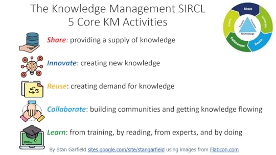 At its core, knowledge management software should support the five core activities of KM: sharing, innovating, reusing, collaborating, and learning: