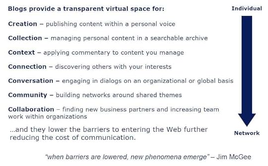 Blogs also can enable a greatly enhanced personal knowledge management system for individual employees. In many large organizations there is an official enterprise document repository. However, the so-called good stuff is often on the individual hard drives of thousands of employees, and so is inaccessible to others. Just as blogs can bring a personal touch to customer communications, blog-based personalized content management could provide employees with what they really want: the best content from respected colleagues, complete with context.